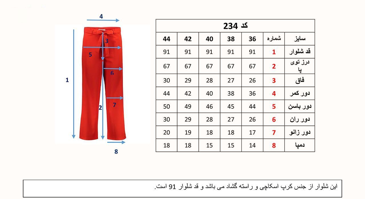 شلوار پارچه ای بگ گشاد تولید شده از اسکاچی نوعی کرپ تابستانی می باشد که با بررسی آناتومی بانوان ایرانی طراحی شده و در دوخت آن از بهترین نخ پلی آرت استفاده شده همچنین بعد عملیات اتو و کنترل کیفی دقیق توسط تیم مجرب به بازار عرضه شده است . در انتخاب ضخامت پارچه ، نگاه تیم طراحی شرکت در تابستانی بودن این نوع الگو بوده است به همین جهت مناسب فصول سرد سال نمی باشد.در بازار ایران انواع مختلف از کرپ اسکاچی موجود می باشد که تیم طراحی سعی خود را بر کیفیت مطلوب و قیمت مناسب گذاشته تا مصرف کنندگان گرامی از قیمت و کیفیت مناسب آن کاملا راضی باشند.الگو بخاطر از بالا گشاد بودن و کمردار بود ن راحتی خاص در پرو دارد.